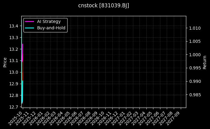 | 交易日期 | AI策略净值 | 年化收益 | 持仓仓位 | 交易方向 |