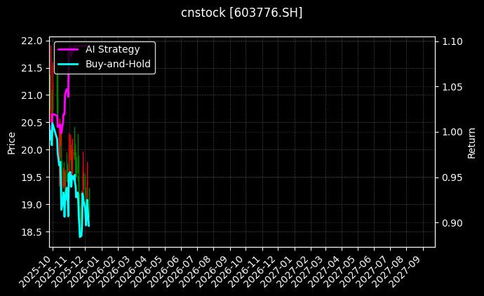 | 交易日期 | AI策略净值 | 年化收益 | 持仓仓位 | 交易方向 |