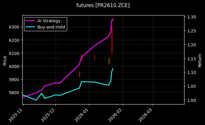 当前持仓情况显示,豆油2609和集运指数(欧线)2608的比例分配合理,体现了AI策略对市场机会的精准捕捉。该组合不仅分散了投资风险,还充分利用了两个不同市场的互补性,进一步增强了整体收益能力。