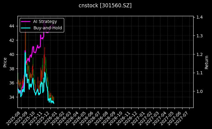 | 交易日期 | AI策略净值 | 年化收益 | 持仓仓位 | 交易方向 |